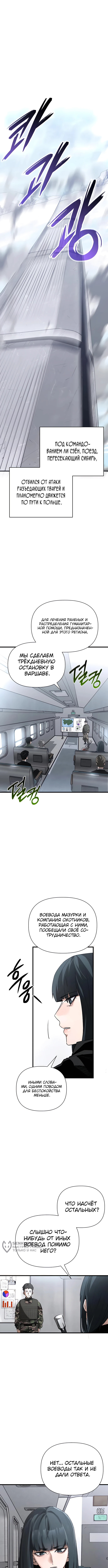 Поезд с охотниками направляется в Польшу, обремененный ранеными и истощенными силами после недавней битвы. Ли Сэён запрашивает поддержку у местной гильдии, используя свое огромное влияние, чтобы гарантировать помощь. Однако на пути героев внезапно возникают ледяные слаймы первого ранга, обладающие опасной температурой жидкого азота и высокой сопротивляемостью к мане. Ю Чансок вступает в бой, демонстрируя уникальную способность испепелять монстров черным пламенем, что поражает окружающих своей эффективностью.