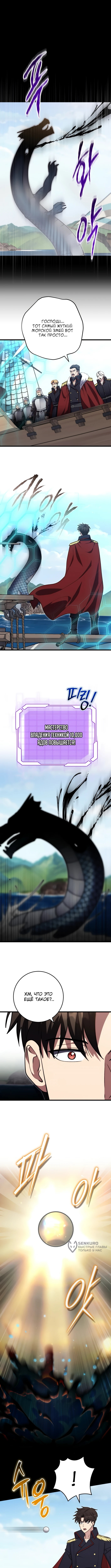 Морской змей атакует корабль смертоносным ядом, от которого страдают все присутствующие, включая маркиза. Юрен обнаруживает, что его техника 10 000 ядов достигла нового уровня, позволяющего поглощать токсины из окружающих. Он спасает экипаж и своих спутников, очищая их тела от яда и укрепляя позиции для решающей схватки. Благодаря новым способностям Юрен наносит монстру сокрушительный удар, заставляя того отступить и выронив загадочную сферу.