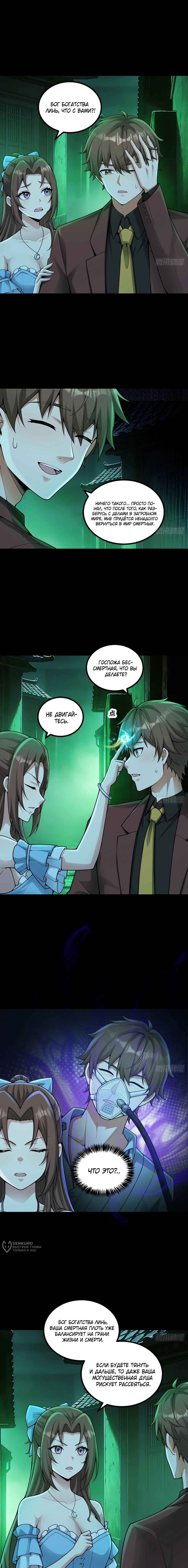 Герой сталкивается с несправедливостью в загробном мире, где хозяин ломбарда обманом лишает бедные души шанса на достойное перерождение. Используя Кнут Бога Богатства, он наказывает демона и возвращает украденную энергию законным владельцам, повышая общий уровень циркуляции богатства. Однако в разгар триумфа его посещает пугающее видение из реального мира, где врачи отчаянно пытаются реанимировать его тело. Осознав, что его время в ином измерении ограничено состоянием его физической оболочки, герой понимает — медлить больше нельзя.